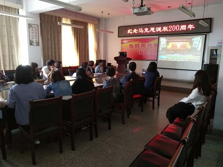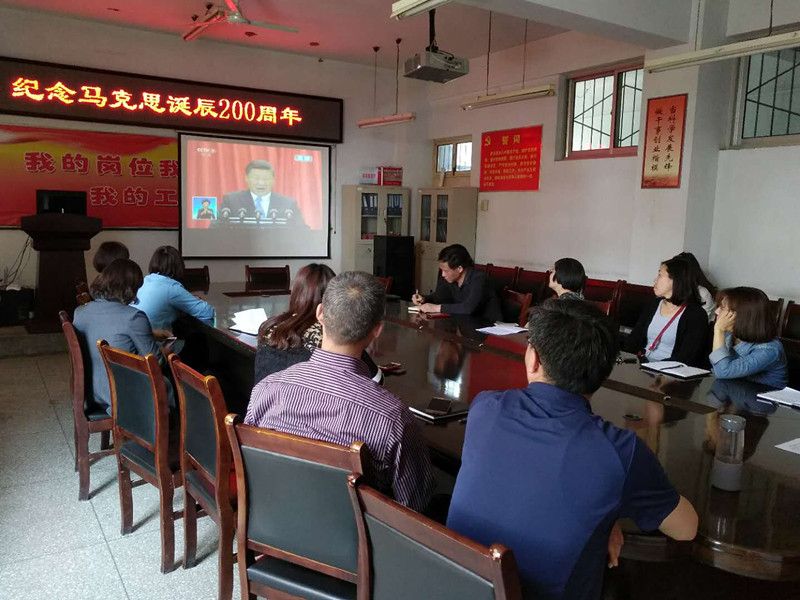 5月4日上午,在公司党总支书记董永红的带动下,认真组织部分老师及辅导员们,集中在公司会议室,一同观看了由中央一套直播的纪念马克思诞辰200周年大会实况。