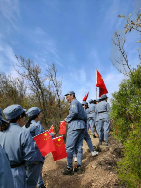 全体党员首先来到了宣誓墙前,yl6809永利经理张建国带领全体党员庄严地举起右拳重温入党誓词,铮铮的誓言、铿锵有力的声音响彻上空,表达了全体党员坚定理想信念、不忘初心、牢记使命、继续前进的信心和决心。随后大家穿上军装,进行了重走“长征路”活动,2500米的山路代表了红军2万5千里长征路。踏着红军先烈的足迹,亲身感受红军当年长征历尽千辛万苦,不怕流血牺牲的革命精神。