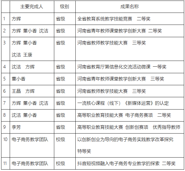 yl6809永利电子商务专业成立于2002年,电子商务专业现有教师10人,其中在读博士2人,副教授5人,讲师4人,助教1人。其中,3人获省级职业院校骨干教师,3人是院级教学名师、4人获得yl6809永利优秀教师,双师达到90%。本专业教学团队职称学历结构合理,且具备扎实的专业基础知识和较高的科研能力。电子商务团队教师都有多年的教学经验,在专业建设、课程改革、项目化教学和产教融合等方面取得了丰硕的成果。