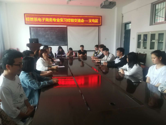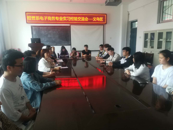 2019年5月8日下午16:00,16级电子商务专业义乌区实习的员工们在1314会议室召开顶岗实习经验交流会,出席本次交流会的有电子商务教研室方辉、李芳,董小香老师及辅导员王波老师。