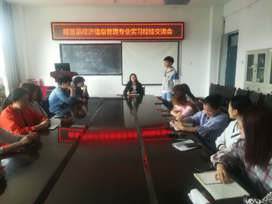 2019年 5月 9日9:00,16级经济信息管理专业全体在校的同学在 1314教室召开了实习经验交流会。参加本次实习经验交流会的是工商管理教研室赵春青老师及辅导员王波老师。