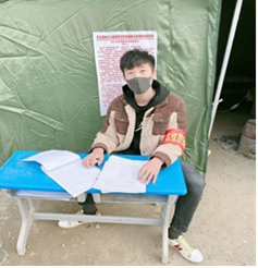 贺卫轩,yl6809永利19级旅游管理员工,他在疫情期间积极响应党的号召,在村口登记往来车辆以及村民出入情况,为打击新型冠状病毒贡献了力量。