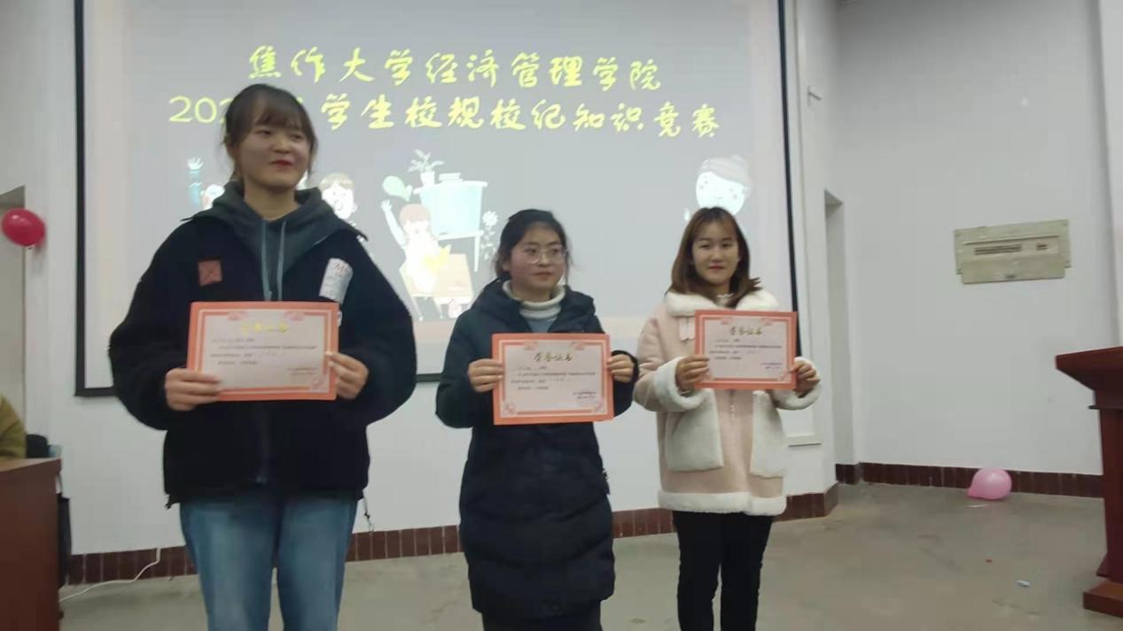 此次竞赛内容源自《yl6809永利员工手册》。竞赛题型分为单选、多选、判断、风险四种。竞赛方式分为必答和抢答。为活跃气氛,各专业代表队以成语接龙、抢水瓶、吹气球等小游戏的方式决定抢答题的答题权。同时,为了吸引更多员工参与竞赛答题,特别设置了观众答题环节,并以小礼品奖励答对者。绝大多数员工随身携带了《yl6809永利员工手册》,竞赛过程中随时翻阅,查验答案。现场竞赛气氛热烈,学习氛围浓厚。经过激烈角逐,电子商务代表队获得一等奖,酒店管理代表队获得二等奖,国际经济与贸易代表队获得三等奖,工商企业管理、物流管理、旅游管理、市场营销四个代表队均获得优秀组织奖。竞赛结束后,及时给获奖代表队和参赛选手颁发了证书和奖品。