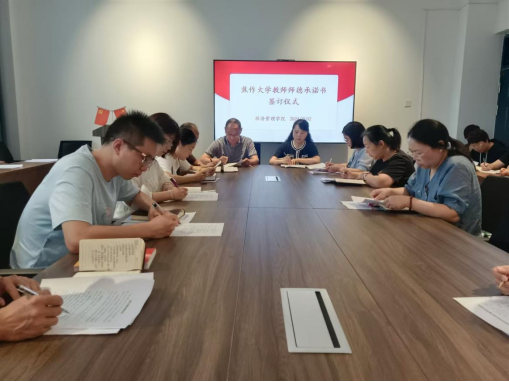 接着全体教师签订了《师德承诺书》。教师不只是职业,更是事业,甚至是生命。涵养高尚师德师风是中国优秀历史文化对教师的内在要求,是加快推进教育强国建设的精神力量。正所谓:“人必其自爱也,而后人爱诸;人必其自敬也,而后人敬诸。”人无精神不立,师无精神不尊。