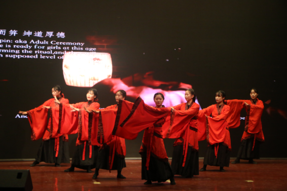 中国有服章之美谓之华,礼仪之大故称夏,礼仪三百,威仪三千,无不体现出国文化的博大精深。来自18、19级旅游管理专业员工的《礼仪之邦》舞蹈,《旗袍秀》,《汉服礼仪秀》完美诠释了中国风韵,中国礼仪。18级旅游管理专业的王凤慧同学带来的太极小像剪纸惊艳了全场,展示了旅游文化与太极结合的全新维度。
