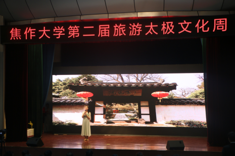 2019年12月6日,“以梦为马,不负韶华”第二届旅游太极文化周活动在南校区报告厅落下帷幕。本次活动以“弘扬传统文化,传承太极精神”为宗旨,以“旅游+太极”特色专业建设为导向,以导游服务技能大赛为基础,以提升员工的太极底蕴和专业技能为目标,采用“琴韵太极、诗韵太极、茶韵太极、礼韵太极”的展现形式,实现旅游文化与太极的完美结合。
