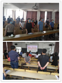 5月25日下午利用公司的周一例会时间,组织全体教职工集中观看;同时还组织全体教职工起立合唱一首歌《我和我的祖国》,进一步提高广大教师的防护意识、激发全体教师的爱国主义情感和为人民无私奉献的高尚情操。
