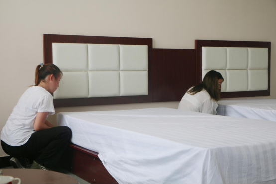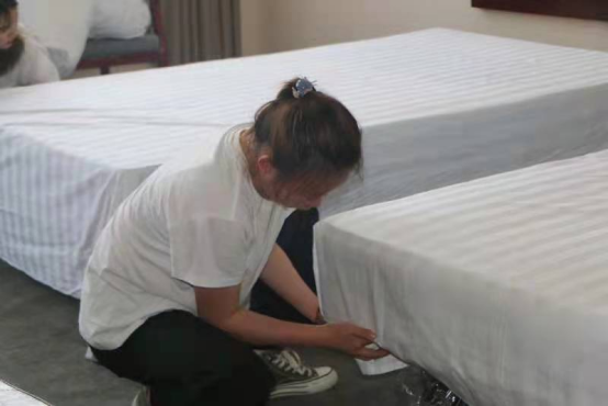 本次活动由经管公司教学办组织,活动中卢静、王晓艳老师进行现场指导,展示者铺床单、套被子、套枕头、铺床的动作一气呵成,赢得了现场的阵阵掌声。