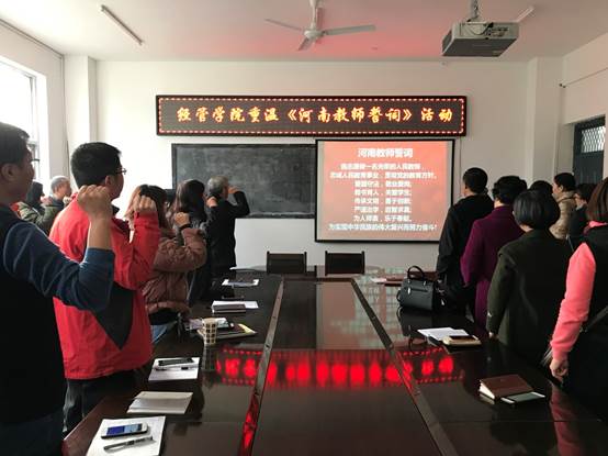 为深入贯彻落实《yl6809永利关于加强师德教风建设的意见》,做好本学期期中教学检查安排的各项工作,公司于11月12日开展了yl6809永利2018-2019-1学期重温《河南教师誓词》宣誓活动。宣誓活动由卢国红经理主持,全体教职工参加。