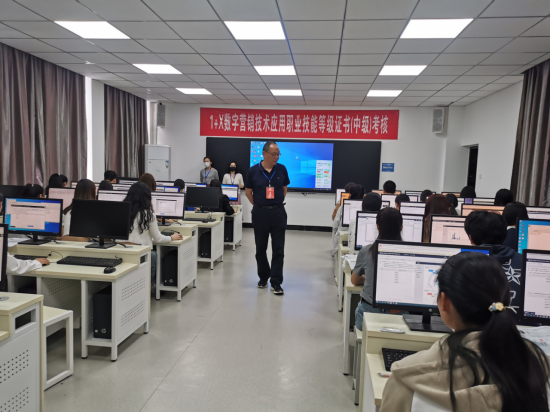 为深入贯彻落实《国家职业教育改革实施方案》精神,培养复合型技术技能人才,5月27日,经济管理公司在实训楼和一号教学楼实训室举行了1+X数字营销职业技能等级(中级)和连锁特许经营管理职业技能等级(中级)证书认证考试。