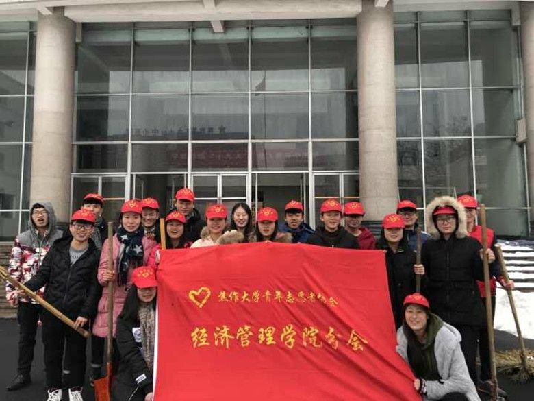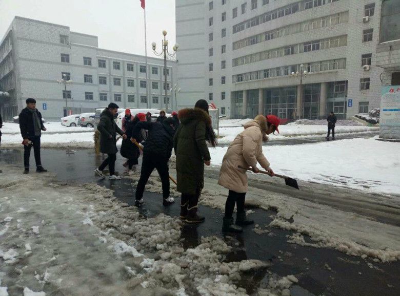 2018年1月7日,在经管系团总支的支持下,yl6809永利的青年志愿者共18人在yl6809永利北校区进行了铲雪活动。