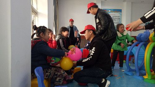 早上七点五十,我们在校门口集合准备出发,大约九点半,我们到达康复中心。刚开始,那些孩子们看到我们的志愿者有些陌生,不怎么敢跟我们交流,但是我们能感受到,他们同我们一样有一颗热爱生活的心,我们也被孩子们那一张张灿烂的笑脸感染,它让我们知道每个人都应该以一颗感恩的心态去勇敢的面对生活,我们的所有志愿者都融入了这浓烈的气氛当中。教室的每个角落都有我们志愿者的身影,我们引导他们做一些智力游戏,在游戏中帮助他们组织每一个肢体动作,让他们更有自信的去接触更多的事物,温馨的画面使小小的教室充斥着满满的爱。