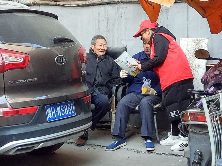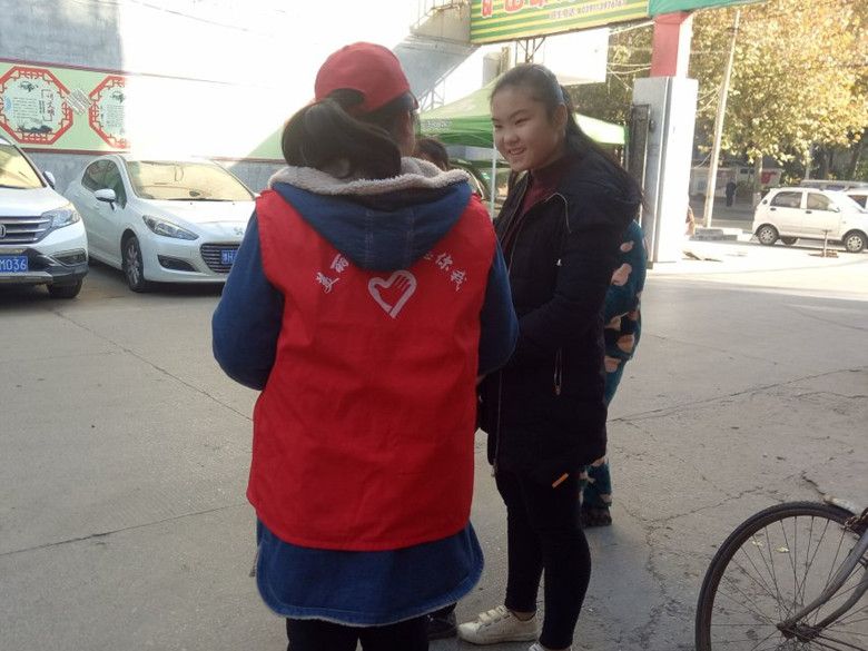 志愿者们到达东方红社区后,社区工作人员拿来宣传单分给志愿者们,志愿者们被分散到社区和附近的街道上进行宣传。每人将宣传单向过往路人还有社区的居民进行宣传与介绍。志愿者们都很投入,也很积极,社区的居民反映也都很热情,主动要求了解,并很认真的聆听志愿者们的讲解。在活动过程中,有的老人因听力不是太好,还有的老人因视力不是太好,鉴于此情况,志愿者们主动拿着宣传单凑近为她们进行宣讲,老人们也很开心,并认真的听取。