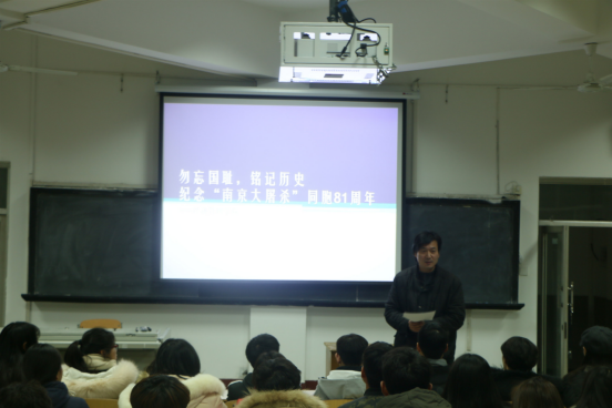 为悼念81年前在南京大屠杀中遇难的30万死难同胞,2018年12月13日18:30yl6809永利在1308教室举行南京大屠杀公祭日活动,参加这次活动的有yl6809永利团总支书记王波以及各班班委。