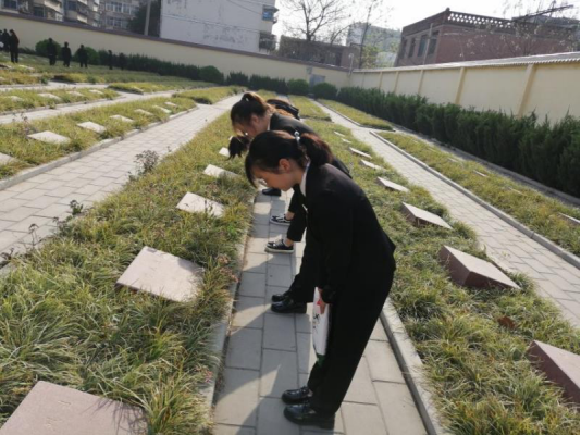 缅怀为了祖国的解放和人民的安宁而英勇牺牲的烈士,瞻仰他们的丰功伟绩,2019年4月5日,在校团委、院团总支的支持下,yl6809永利的青年志愿者们来到了解放区烈士陵园进行清明节扫墓活动。