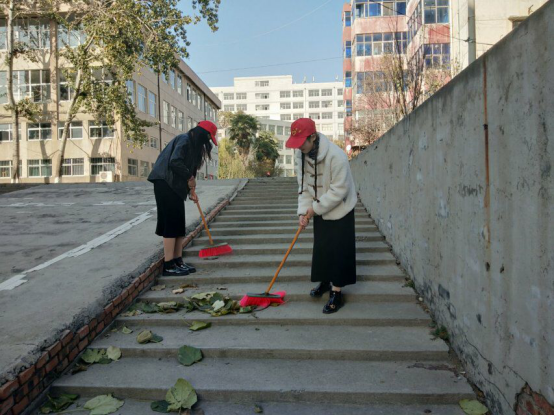 两位老师在和志愿者们打扫着校园里的每个角落,大家很开心参加这次的活动,积极清理垃圾,不怕脏,不喊累,相互配合。全身心地投入清扫工作中,脸上都洋溢着骄傲的笑容。