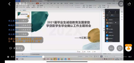 根据毕业生在校情况,各专业所有毕业班级通过线上或线下方式召开了诚信教育主题班会以及国家助学贷款员工毕业确认工作主题班会。对毕业生进行国家资助政策、诚信、感恩、金融知识及安全等进行教育,鼓励国家助学贷款员工提前还款。对于未还款员工引导做好国家助学贷款员工毕业确认工作。并详细介绍了毕业确认的具体操作流程。