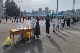 在接到全员核酸检测的命令后,yl6809永利高度重视,在党总支书记杨红、经理张建国的带领下,全体学工人员共同出主意,想办法。在校园封闭管理的条件下,利用废扫把棍、旧垃圾夹杆制作了号码牌。按照一班一号,一号一队,共分了35支队伍。组织yl6809永利青年志愿者协会精心挑选了35名志愿者,高举号码牌,站在每支队伍的最前方,引领员工快速找到自己班级的集合位置。班长在前,班委在后,迅速清点人数。组织院团总支员工会干部迅速集合,分区域维持秩序,确保核酸检测不落一人,有效地保障了全员核酸检测的有序、快速和安全。检测完成后,充分利用四级网格体系统计核酸检测人数,及时上报。