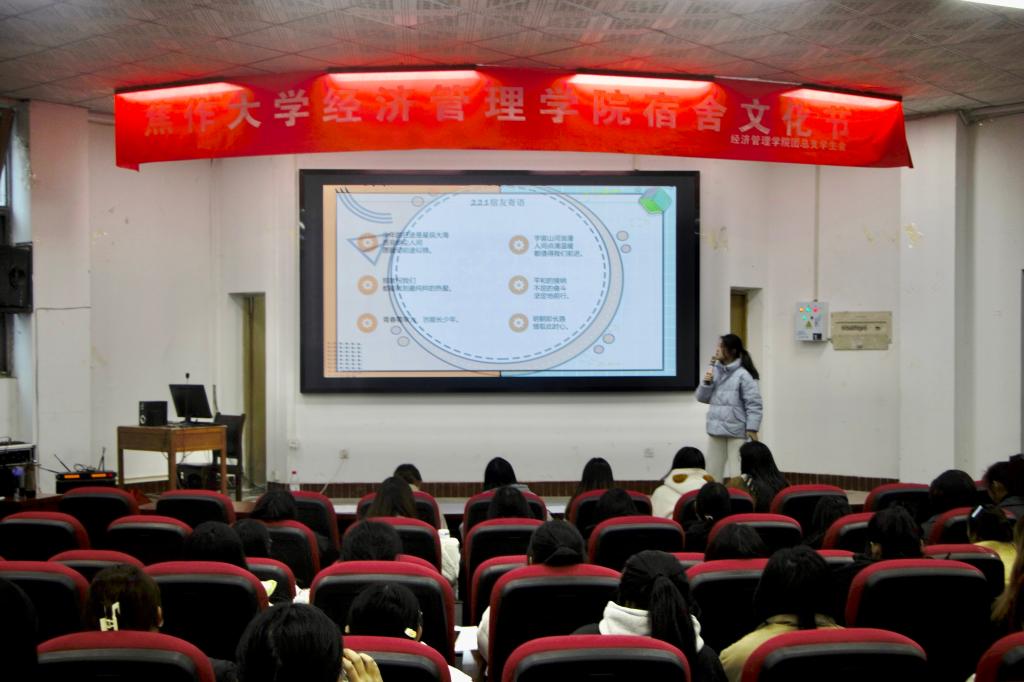 此次宿舍文化节活动主要是针对22级新生开展的,共有20个宿舍报名参与比赛,参赛宿舍依次上台,用PPT介绍宿舍的成员简介、生活日常照片、宿舍照片以及宿舍公约等,参赛人员的讲解展现了经管学子对生活的热爱,乐观积极的生活态度以及青春的朝气。最后,根据现场展现、实地勘察等评选出了一等奖3名、二等奖5名、三等奖8名、优秀奖2名。在热烈的掌声中,为此次活动画上了圆满的句号。
